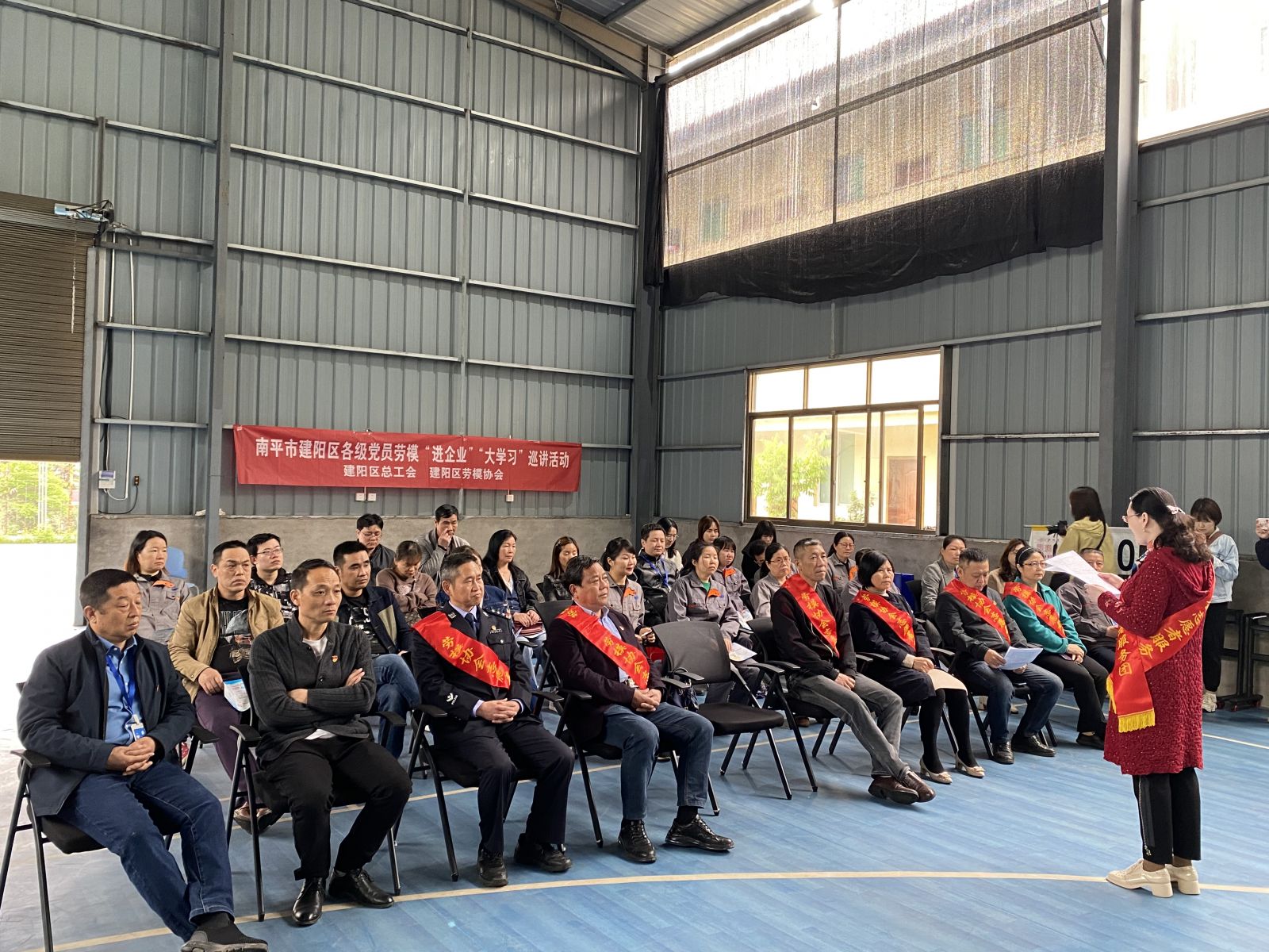 2021年04月08日下午,南平市建陽區(qū)各級黨員勞模到我司開展“進企業(yè)”“大學習”巡講活動,公司工會主席陳忠毅、副總周遠慧及20余名員工參加了本次活動。